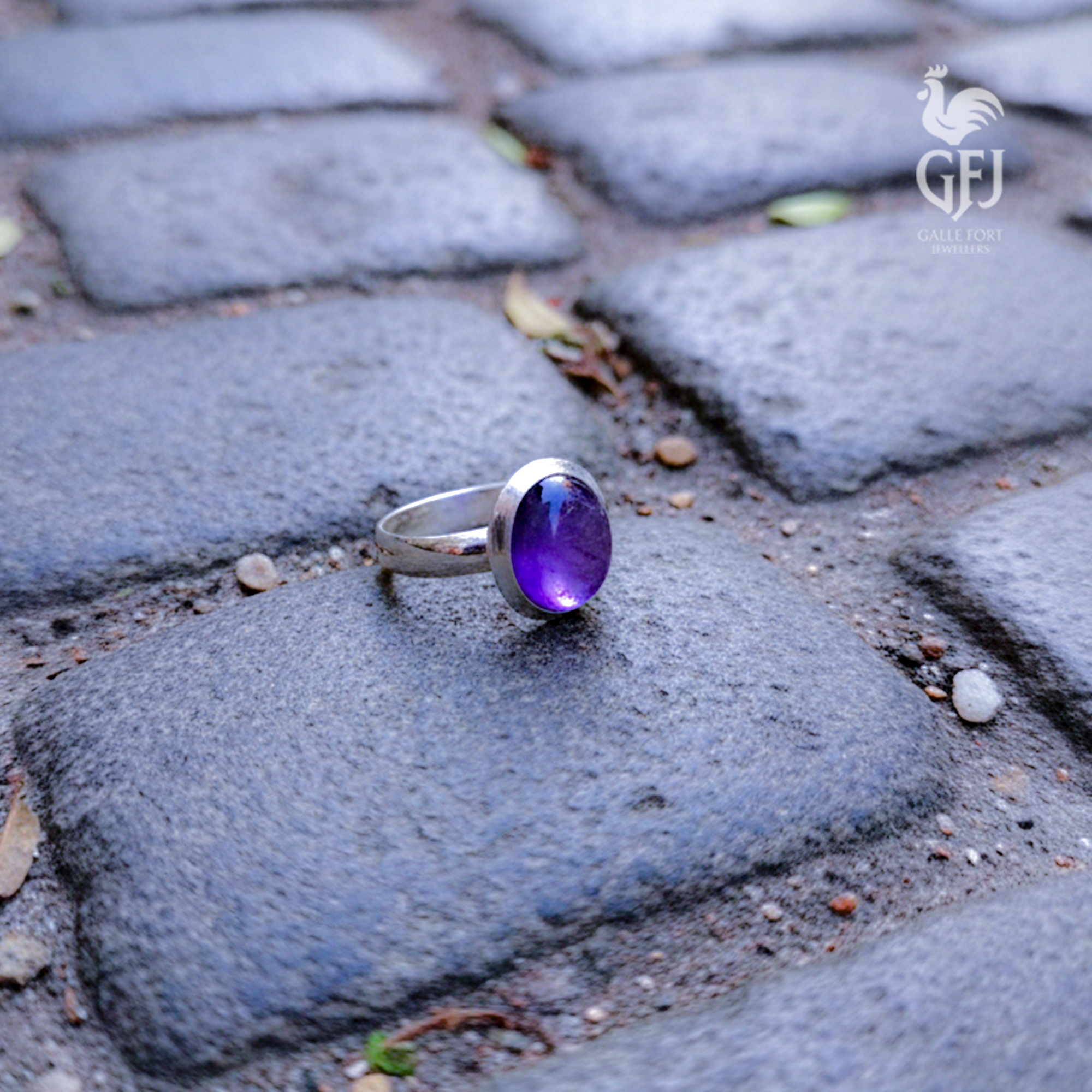 Drawing inspiration from the weathered stones of the Galle Fort ramparts, this ring features a smooth, polished amethyst cabochon. Set in a robust sterling silver bezel, the design prioritizes a grounded, tactile elegance that feels as though it has been unearthed from history. This is a piece for the storyteller—a bold, organic statement that captures the mysterious beauty of the fort at sundown.
